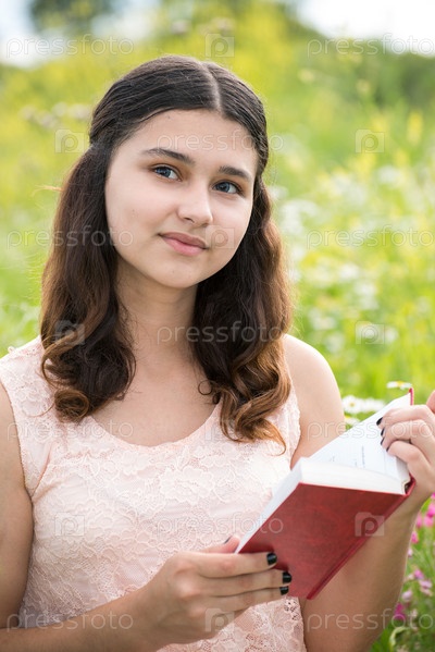 Красивая девочка с книжкой в поле