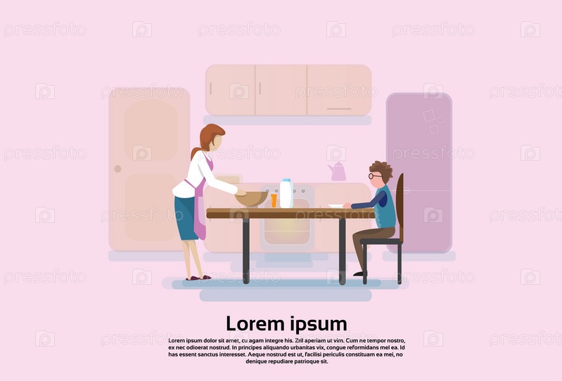 Мать с сыном на кухне