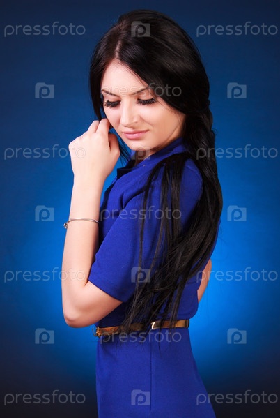 Молодая привлекательная женщина в синем платье