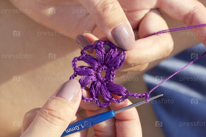 Женщина вяжет крючком