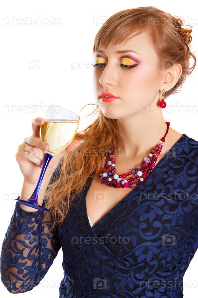 Портрет красивой молодой женщины с бокалом шампанского