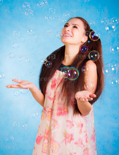 Молодая женщина с мыльными пузырями