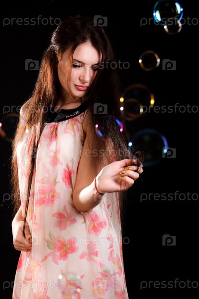 Молодая женщина с мыльными пузырями