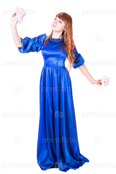 Красивая молодая женщина в синем платье