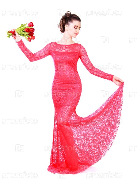 Красивая молодая женщина в красном платье