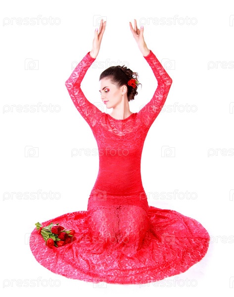 Красивая молодая женщина в красном платье