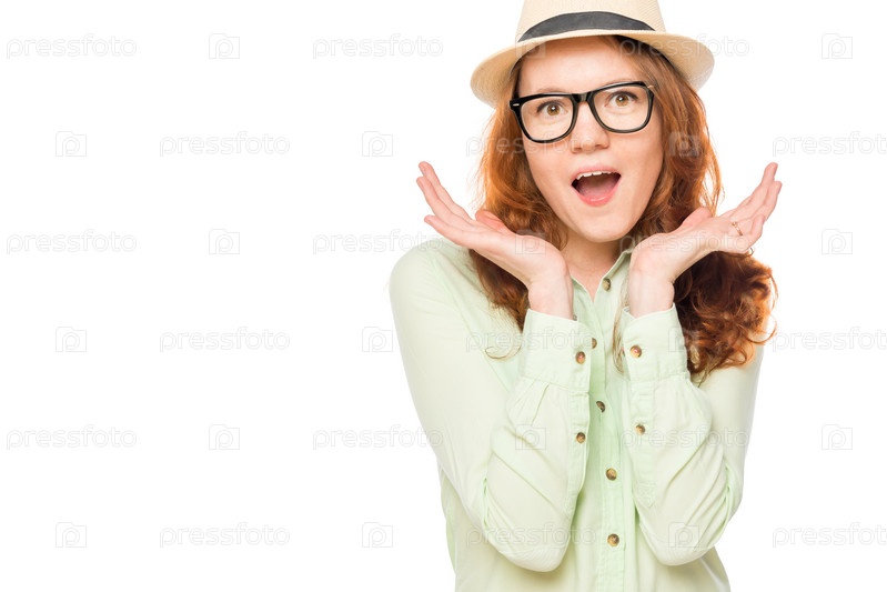 Удивленная девушка в шляпе
