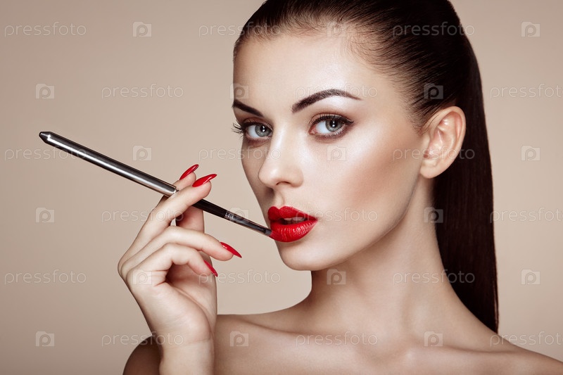 Девушка красит губы