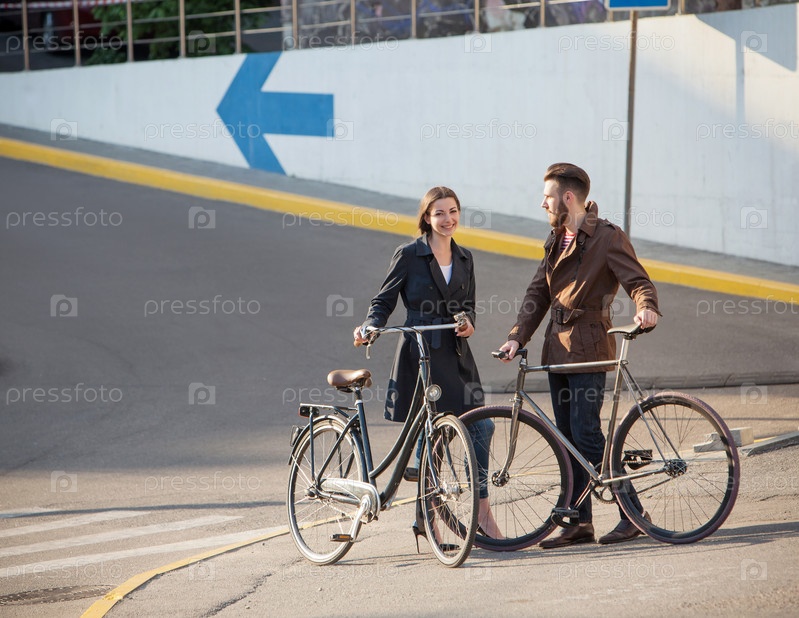 Молодая пара с велосипедами