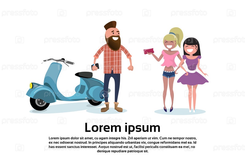 Байкер и красивые девушки