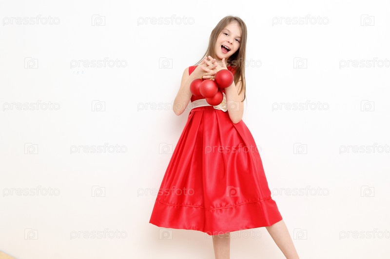 Красивая девочка с елочными шарами