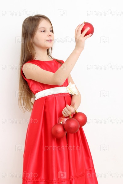 Красивая девочка с елочными шарами