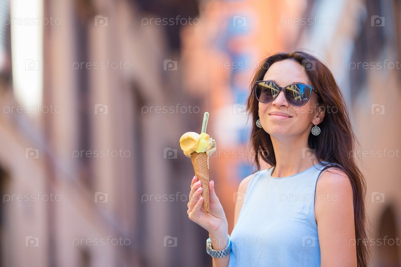 Привлекательная женщина с мороженым