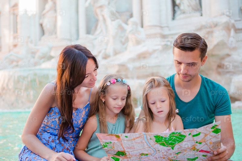 Семья с туристической картой
