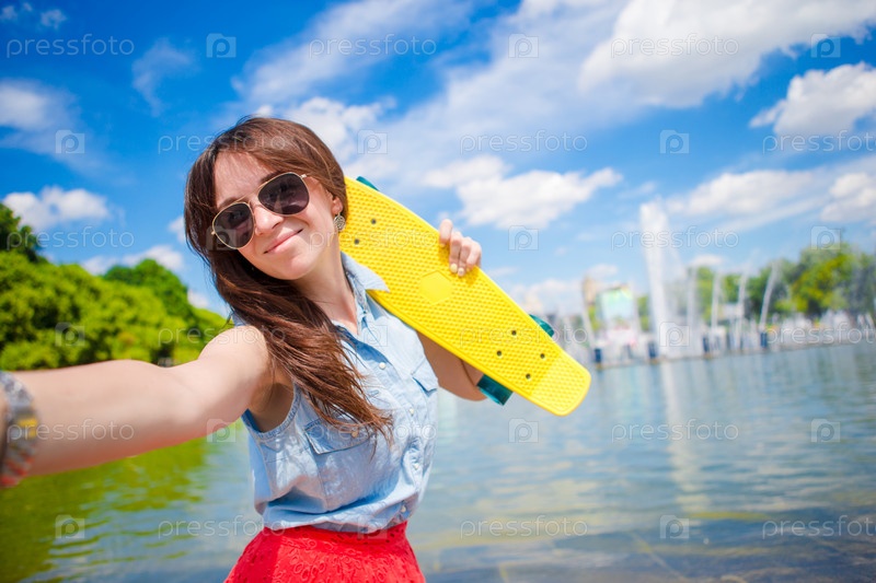 Молодая девушка со скейтом