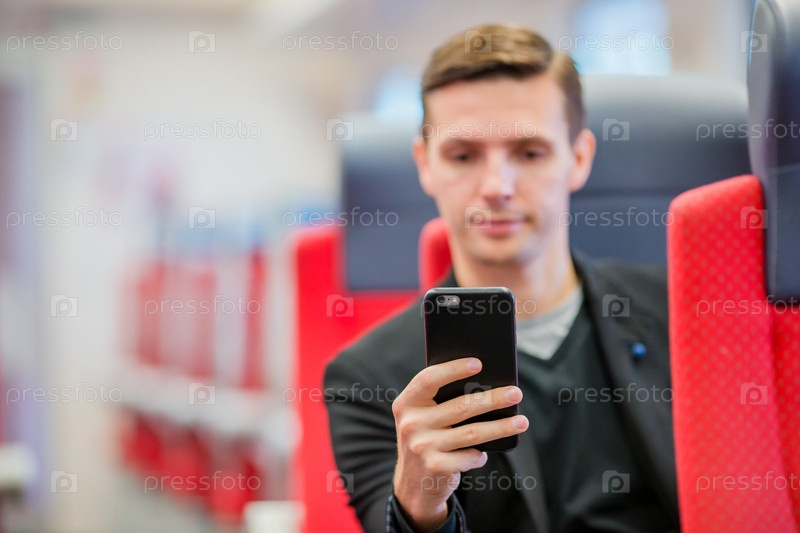 Мужчина в поезде со смартфоном