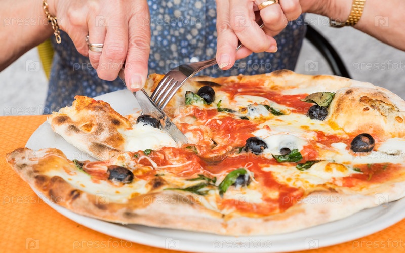 Резка пиццы в пиццерии