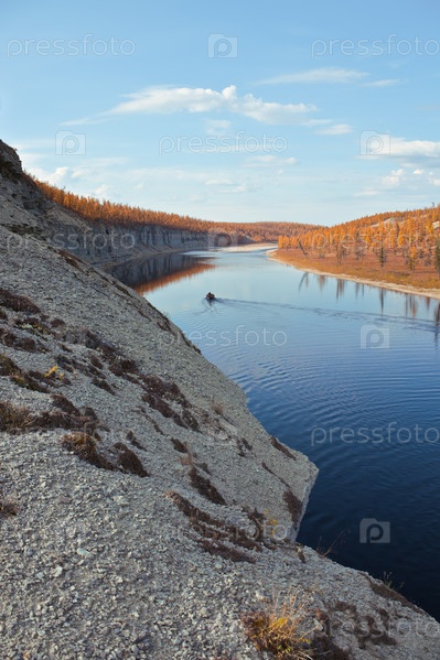 Лодка с рыбаками на сибирской реке