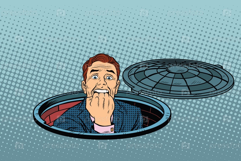Испуганный человек в канализационном люке