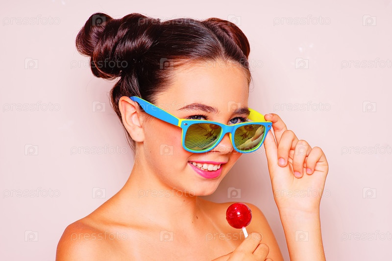 Красивая маленькая девочка с леденцом