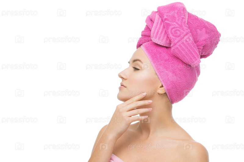 Красивая девушка в розовом полотенце