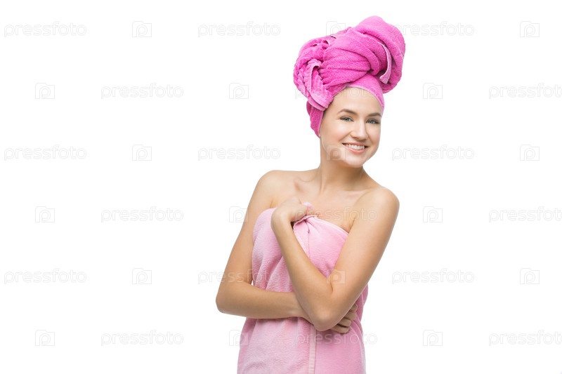 Красивая девушка в розовом полотенце