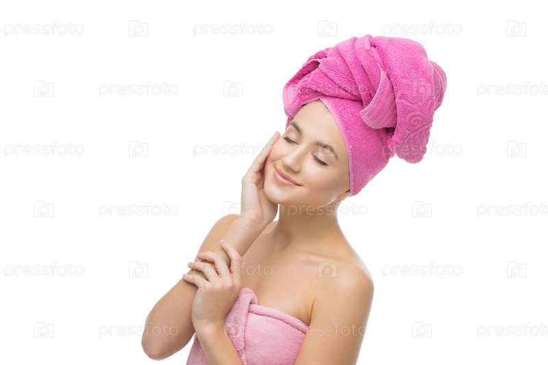 Красивая девушка в розовом полотенце