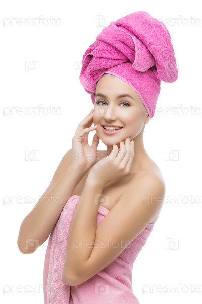 Красивая девушка в розовом полотенце