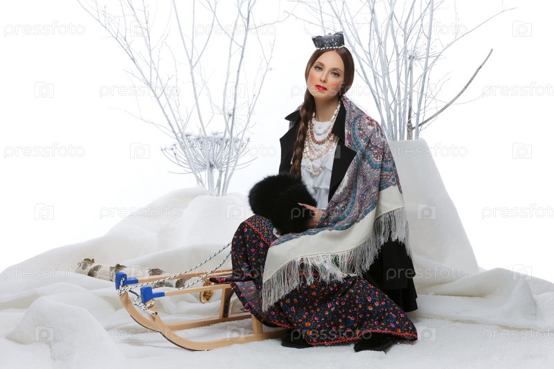Красивая русская девушка на санях