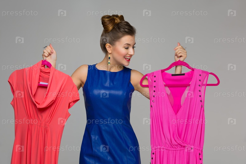 Счастливая девушка с платьями