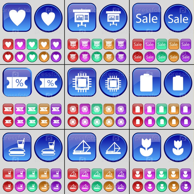 Большая коллекция кнопок разных цветов