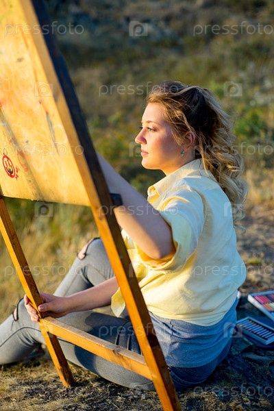 Молодая художница у моря
