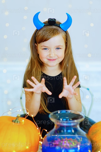 Маленькая девочка в костюме демона
