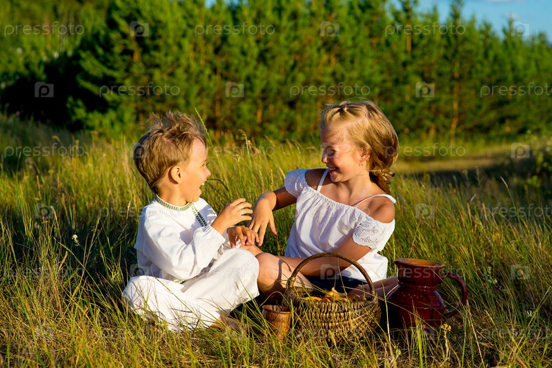 Брат и сестра на пикнике