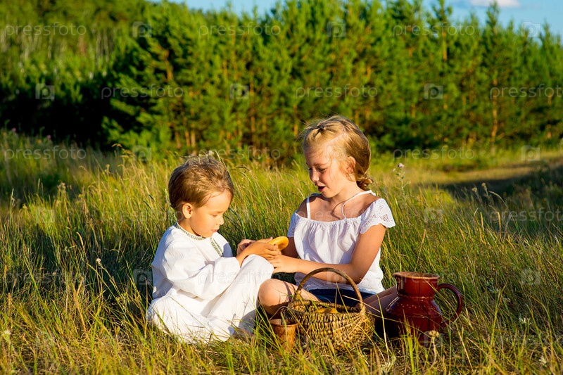 Брат и сестра на пикнике