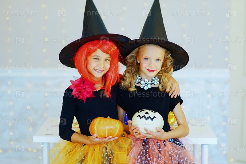 Две маленькие девочки в костюмах ведьм