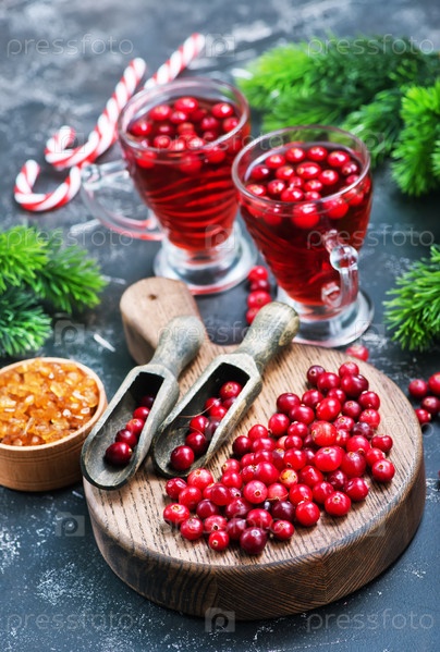 Клюквенный напиток и ягоды