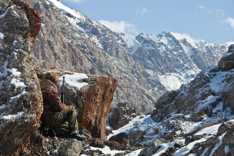 Охотник с винтовкой в горах