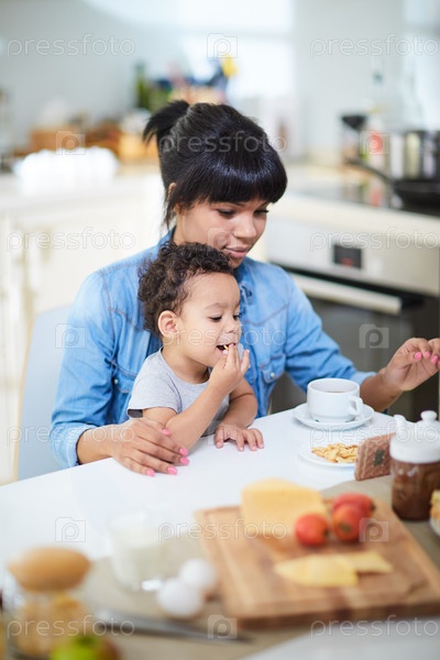 Мать с малышом на кухне