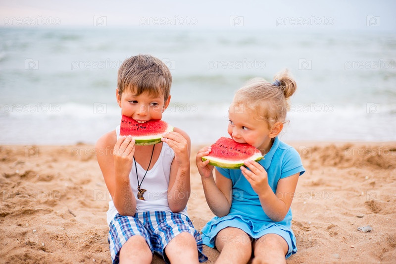 Двое детей на пляже