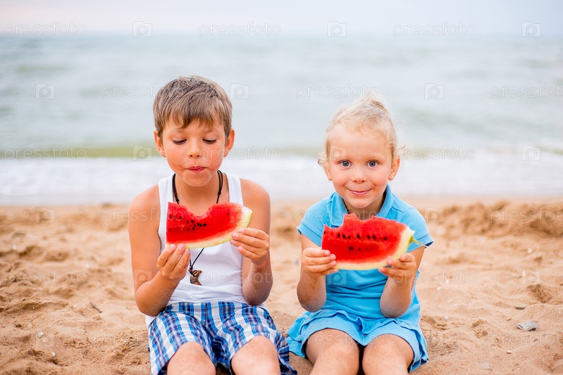 Двое детей на пляже