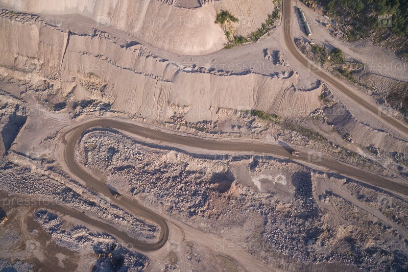 Промышленные грузовики в песчаном карьере