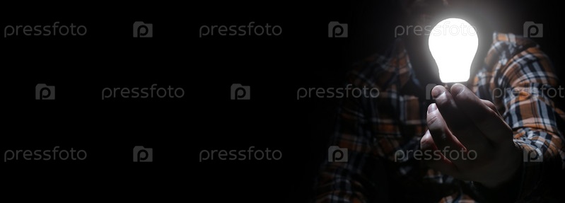 Человек в темноте с лампой