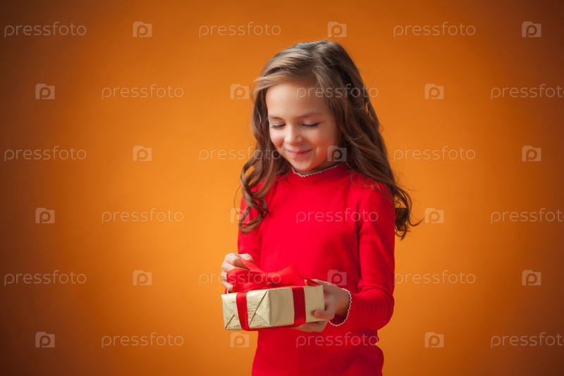 Милая веселая девочка с подарком
