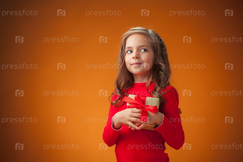 Милая веселая девочка с подарком