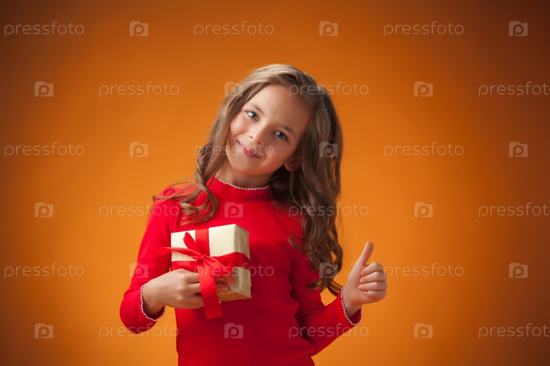 Милая веселая девочка с подарком