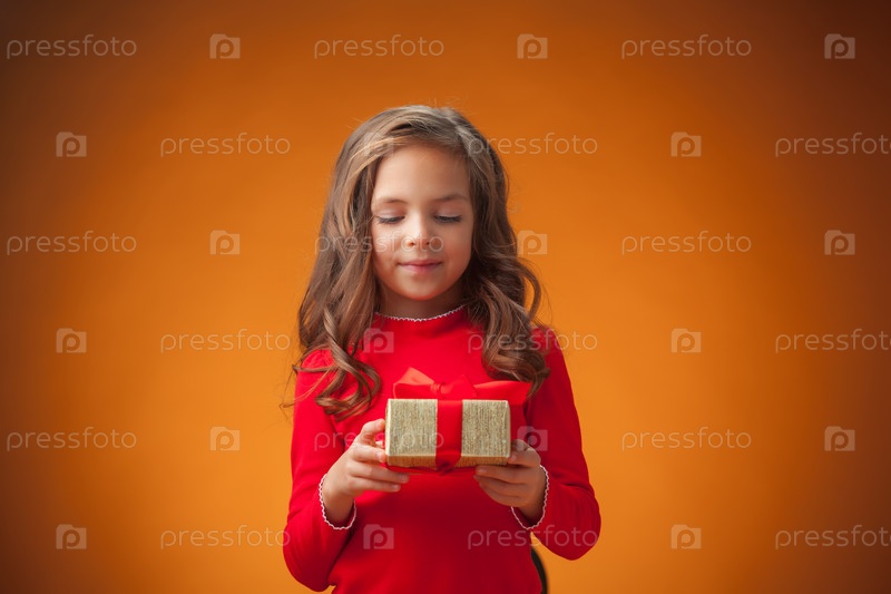 Милая веселая девочка с подарком