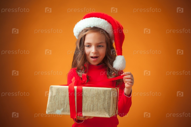 Милая веселая девочка в рождественской шапке