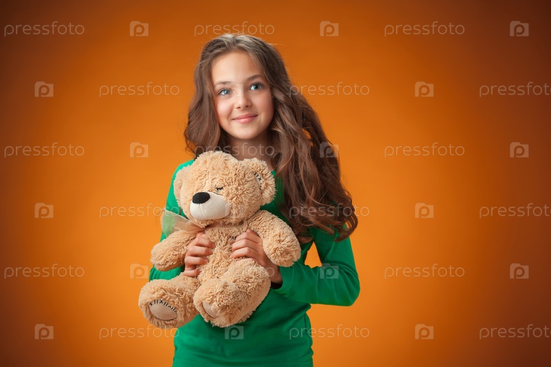 Милая девочка на оранжевом фоне