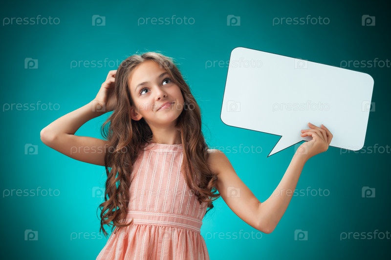 Милая веселая девочка на синем фоне